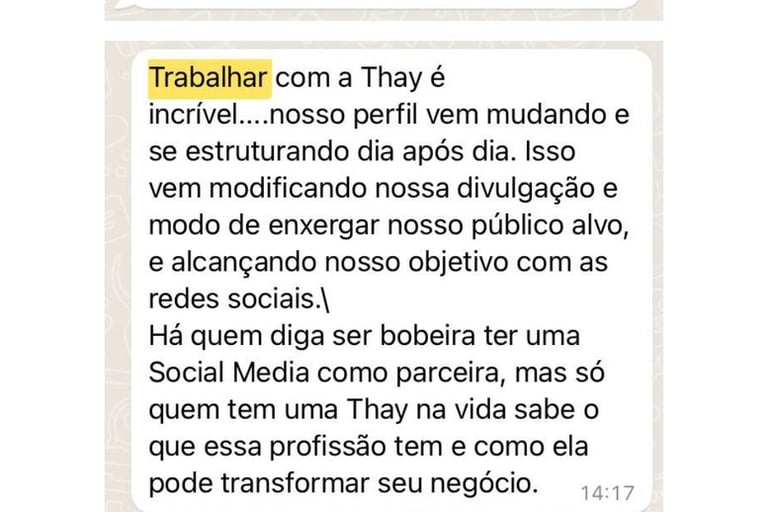 Sou Thayná, paranaense, mãe de dois e criadora de conteúdo. Comecei minha jornada digital em 2018 e, desde 2022, atuo como Social Media, sendo o braço direito de grandes profissionais que decidiram se posicionarem online.